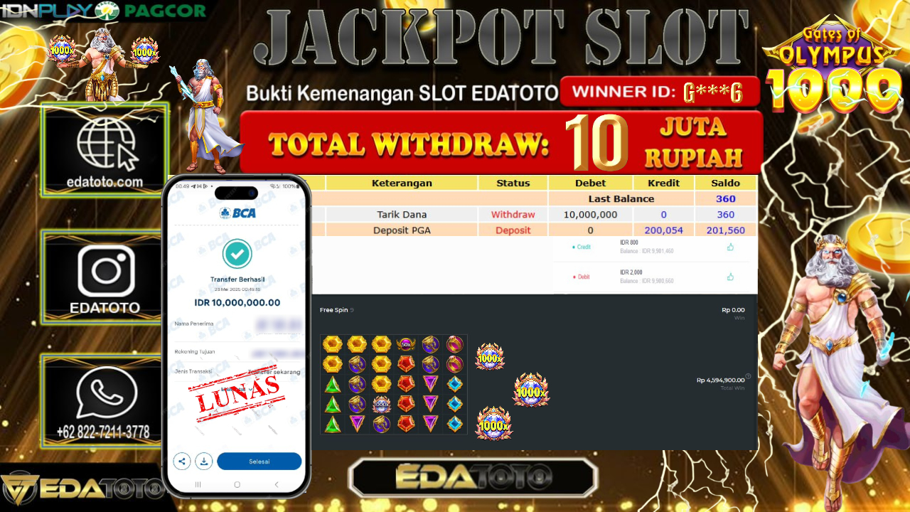 Selamat Kepada Pemilik user ID : G***6 Hari/Tanggal : Rabu/ 28, Mei 2025 Jackpot : Rp. 10.000.000 JT Permainan : Gates . . .