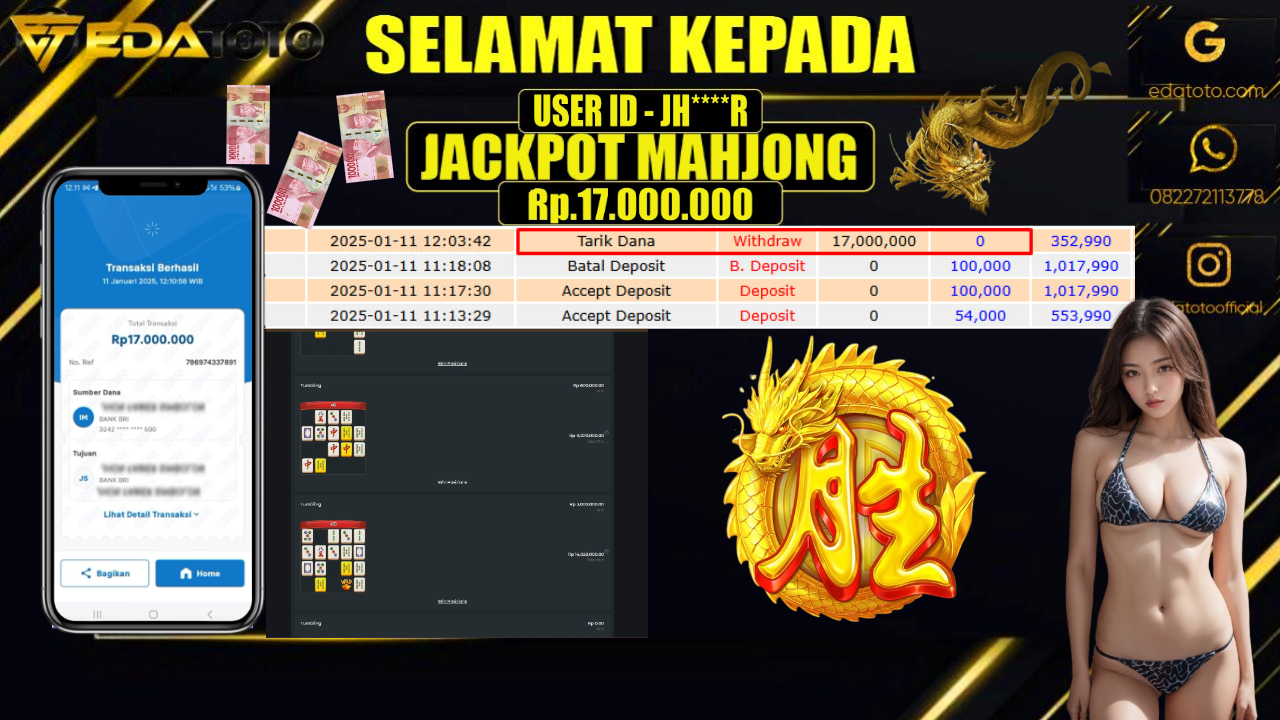 Selamat Kepada Pemilik user ID :  JH****R Hari/Tanggal : MINGGU / 12  , JANUARY 2025 Jackpot : Rp. . . .
