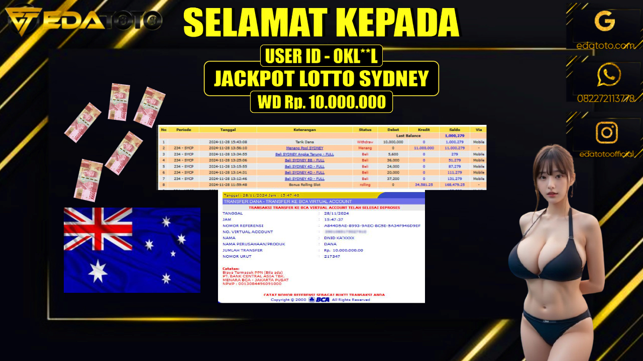 Selamat Kepada Pemilik user ID :  OKL**L Hari/Tanggal : KAMIS / 09 JANUARY 2025 Jackpot : Rp. 10.000.000 JT Permainan . . .