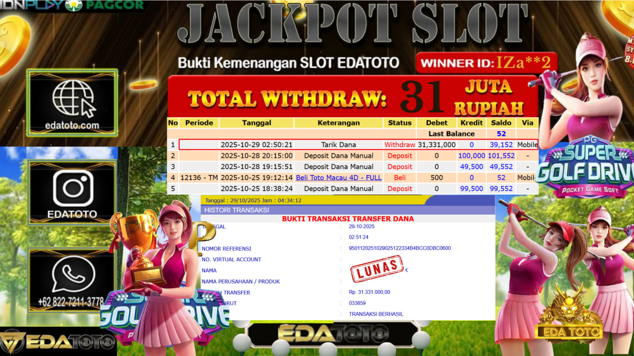 Selamat Kepada Pemilik user ID : IZa**2 Hari/Tanggal : Rabu / 28, Oktober 2025 Jackpot : Rp. 31.331.000 JT Permainan : Super . . .