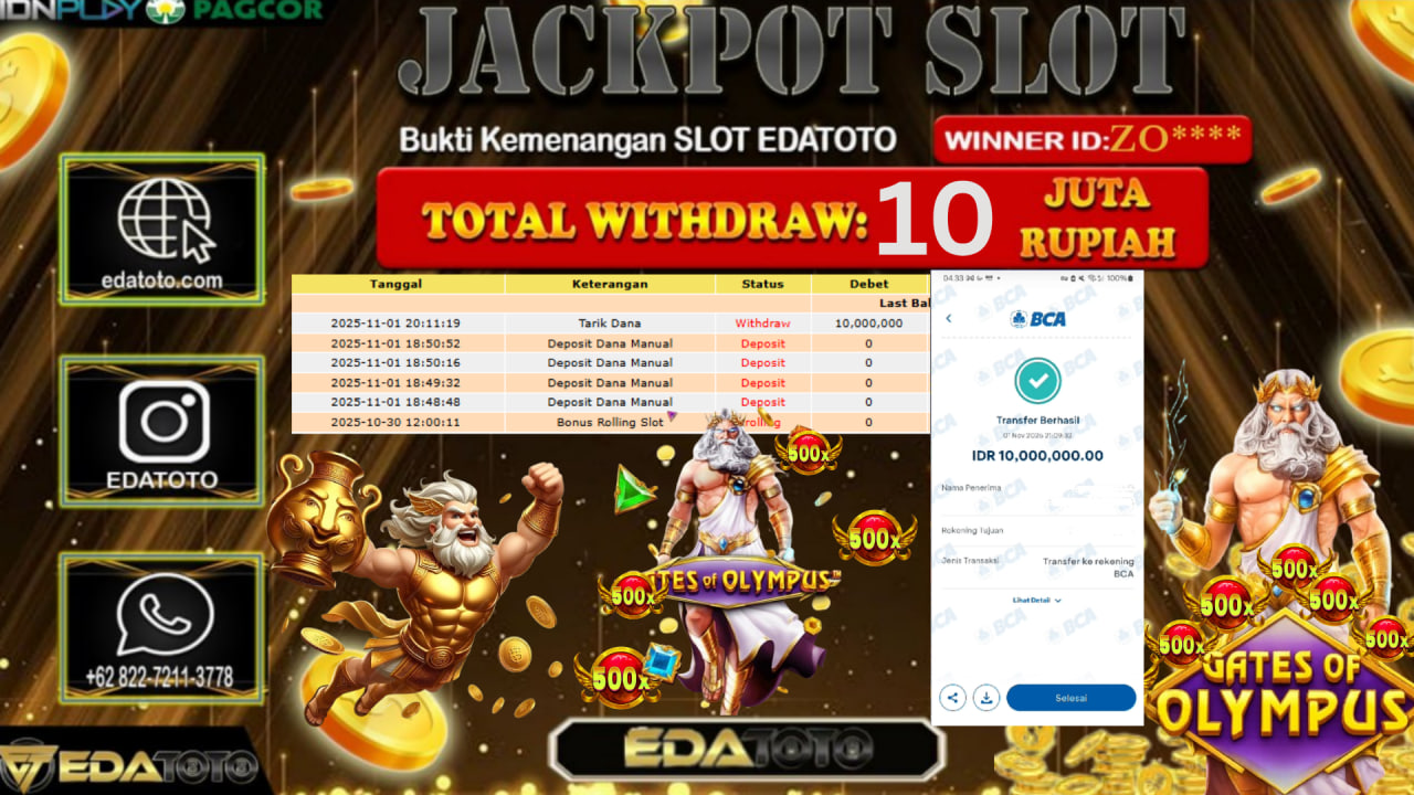 Selamat Kepada Pemilik user ID : ZO**** Hari/Tanggal : Sabtu / 1, November 2025 Jackpot : Rp. 10.000.000 JT Permainan . . .